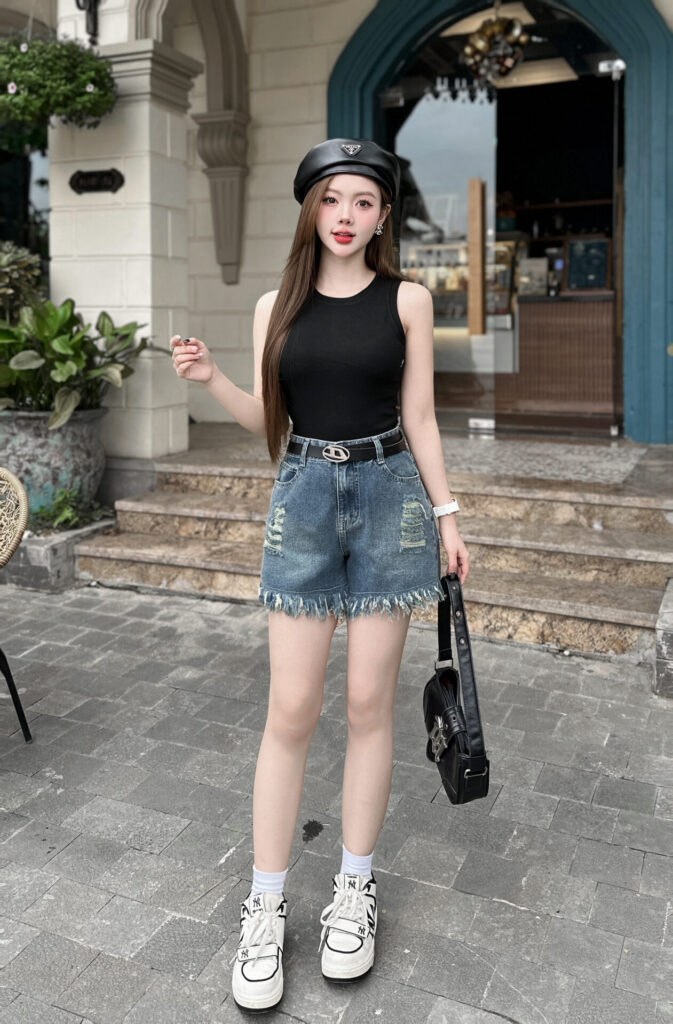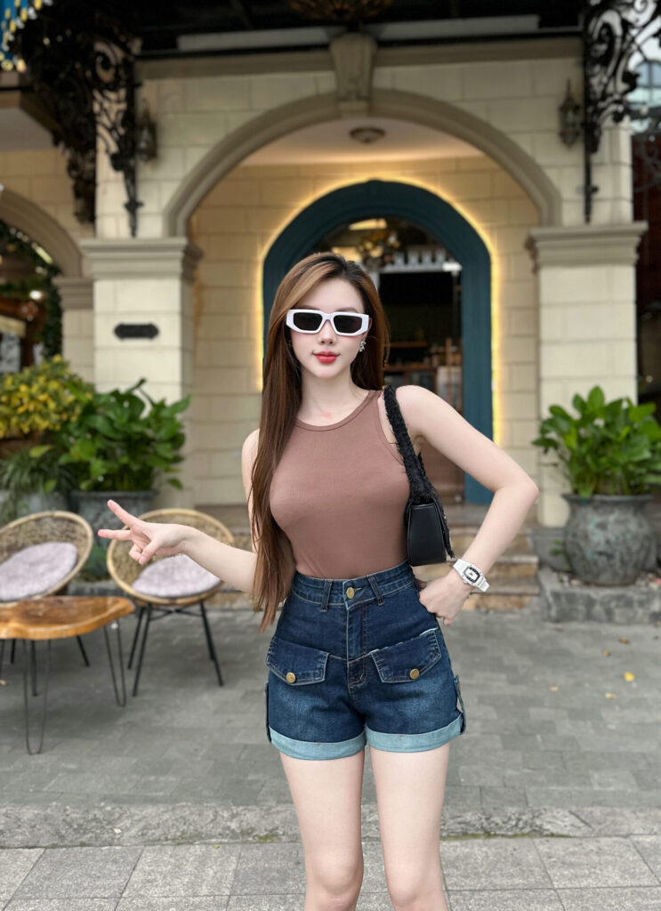 Set đồ này không chỉ thoải mái, dễ vận động mà còn giúp bạn khoe khéo đôi chân thon gọnbờ vai săn chắc, tạo cảm giác sexy nhưng không phô trương. Chọn áo tanktop ôm body để tôn lên đường cong, hoặc tanktop form rộng cho phong cách street style cá tính. Kết hợp cùng quần sooc jeans cạp cao sẽ giúp tôn vòng eo, kéo dài đôi chân, mang đến tổng thể cân đối và hiện đại.
