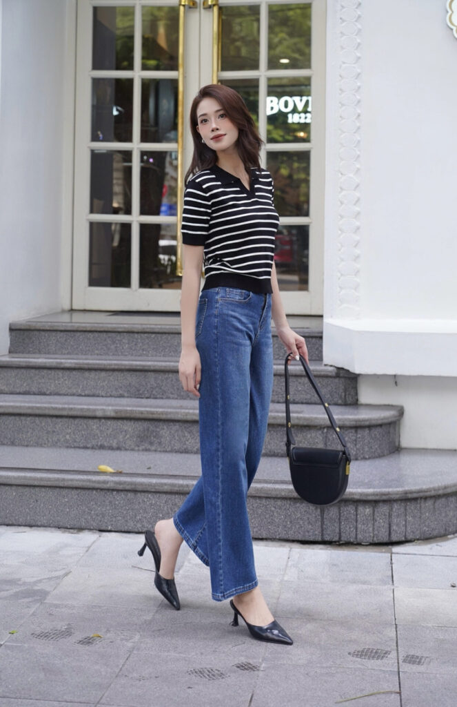 Luôn chú ý chất liệu: jeans quá cứng dễ làm set đồ kém tự nhiên. Hãy chọn loại có độ co giãn nhẹ để thoải mái hơn.