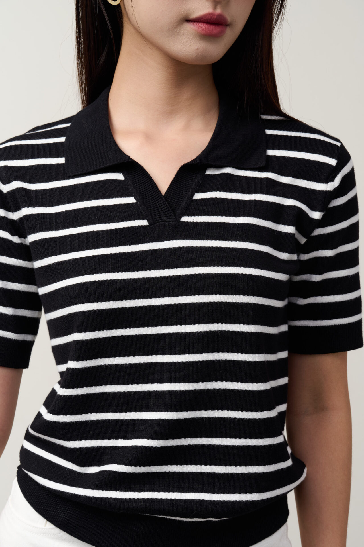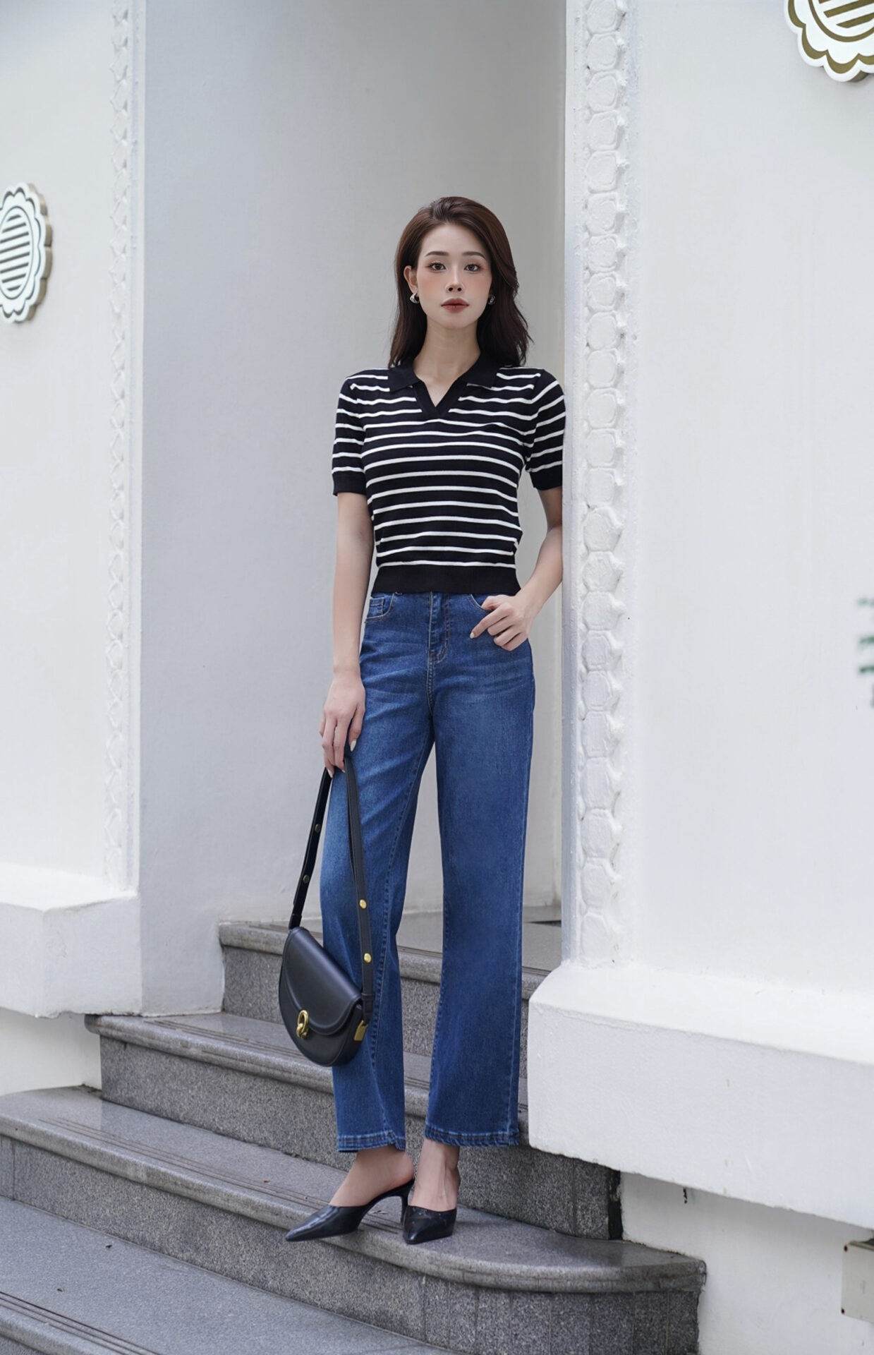Thiết kế cổ V giúp tôn dáng, tạo cảm giác gọn gàng và thanh thoát cho người mặc. Bên cạnh đó, họa tiết kẻ sọc nhẹ nhàng mang đến vẻ trẻ trung, hiện đại, cực kỳ phù hợp cho các dịp đi chơi, dạo phố hay gặp gỡ bạn bè.