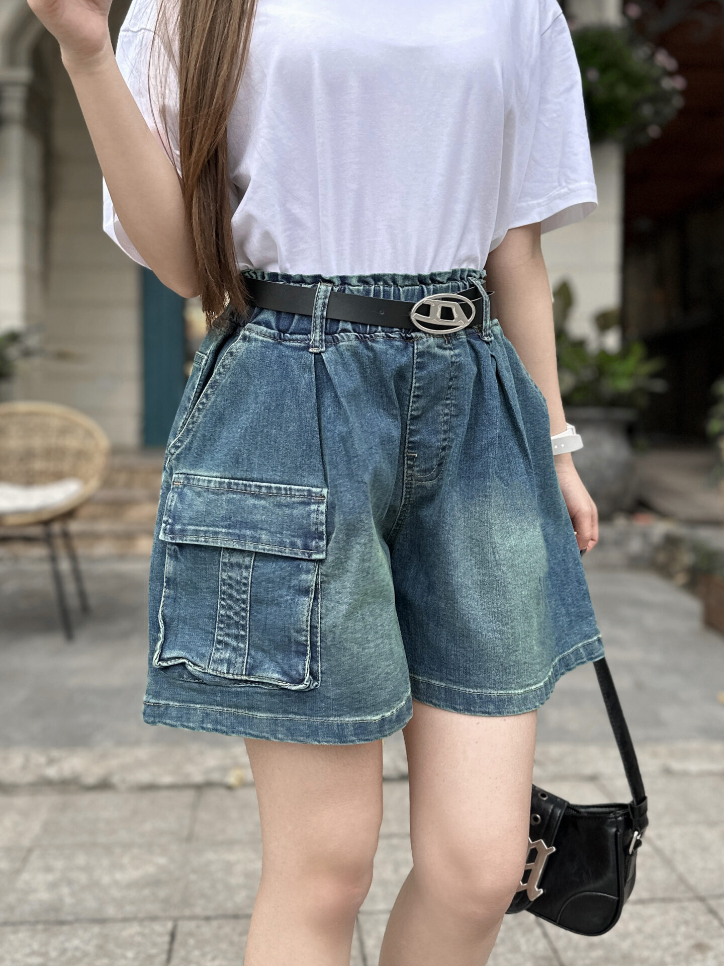 Quần Sooc Jeans Nữ Cạp Chun Túi Hộp