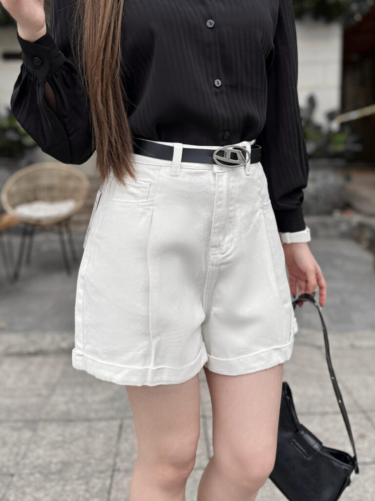 Không thể thiếu trong danh sách này chính là mẫu quần short jeans nữ đẹp với thiết kế cạp cao – item “quốc dân” mà bất kỳ cô nàng nào cũng nên sở hữu. Quần short jeans cạp cao cũng rất dễ phối đồ: bạn có thể mix cùng áo thun đơn giản cho outfit thường ngày, hoặc kết hợp với áo sơ mi, áo kiểu để tạo nét thanh lịch mà vẫn cá tính. Đặc biệt vào những ngày nắng đẹp, item này là lựa chọn hoàn hảo để khoe khéo đôi chân dài cùng vòng eo thon săn chắc.